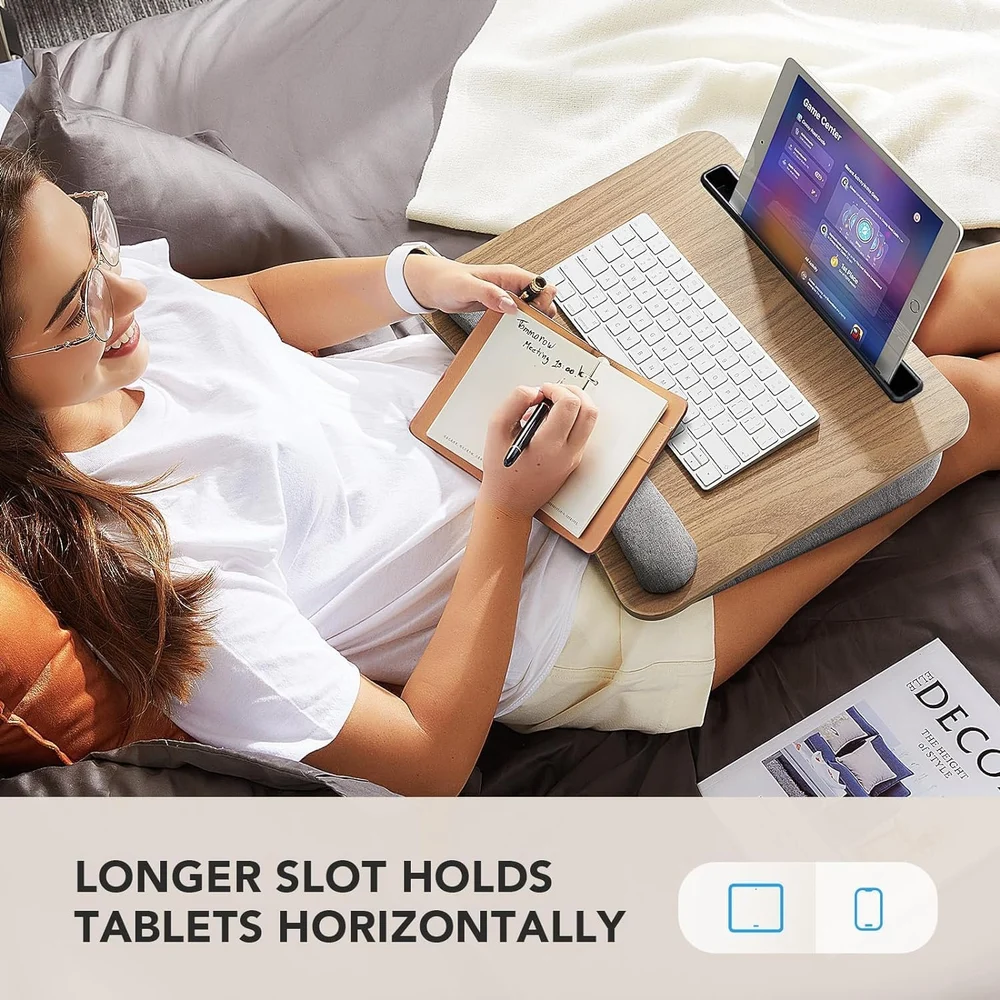 All-in-one Portable Lap Desk for Laptop, Tablet, Phone with padded cushion and extra storage