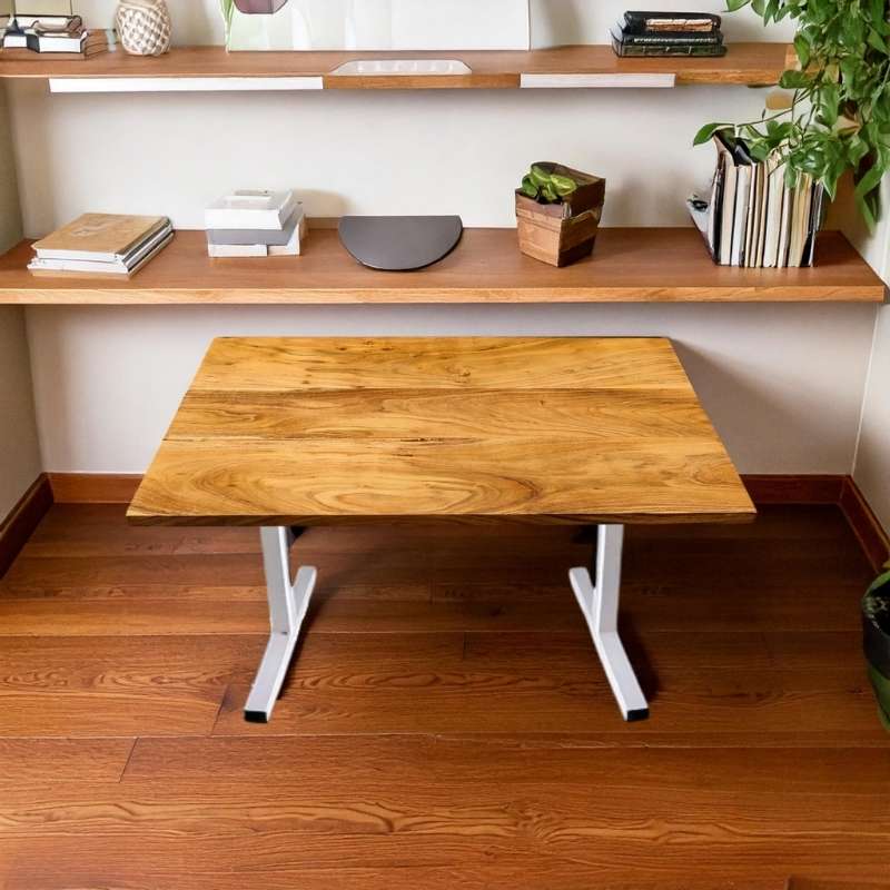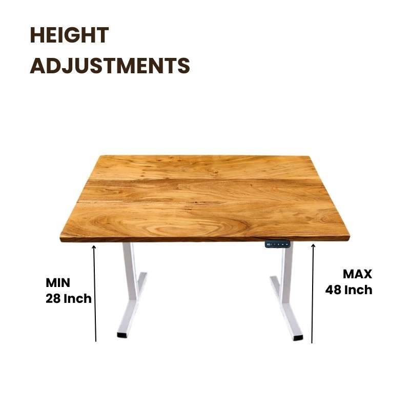 This Height Adjustable Table, a 48-inch Straight edge solid wood table with a height adjustment option, is equipped with an electric motor that helps adjust height in no time. Electric sit & stand desk that is stylish, functional, and affordable. Crafted Options are available in solid wood. Up & Down Tables have different designs and colours and a metal frame, this height-adjustable table is beautifully eye-catching and functions to complement your work environment for office and home needs.