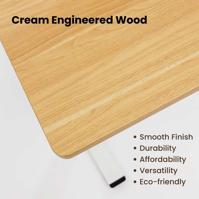 Probably one of the most effective and chic solutions is a standing desk with a cream-engineered wood top. The cream-engineered wood tabletop has that smooth, fuzzy, and welcoming feel, which is appropriate for any combination of home decor themes. Further, it is wear-resistant and does not scratch easily, it is also easy to clean.