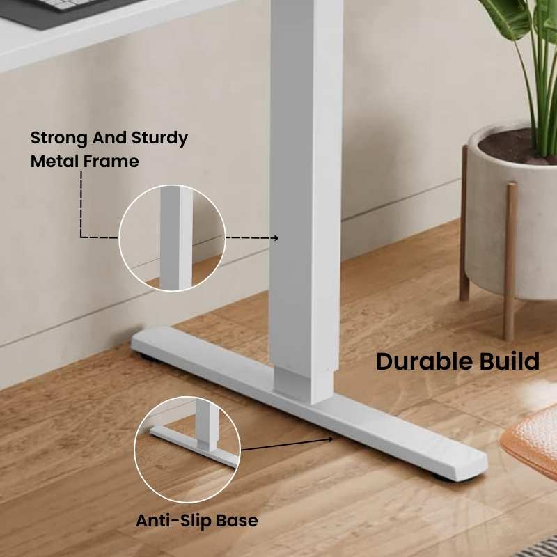 Adjustable Desk Legs: Sturdy White metal legs with wobble-free height adjustment with just ONE BUTTON versatile for homes, offices, and schools.